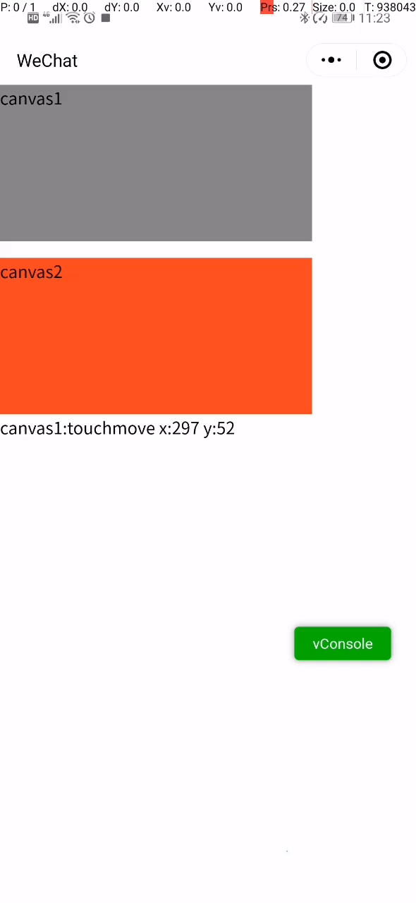 let msg = "canvas2:" + e.type + " x:" + parseInt(e.changedTouches[0].x)+ " y:" + parseInt(e.changedTouches[0].y)