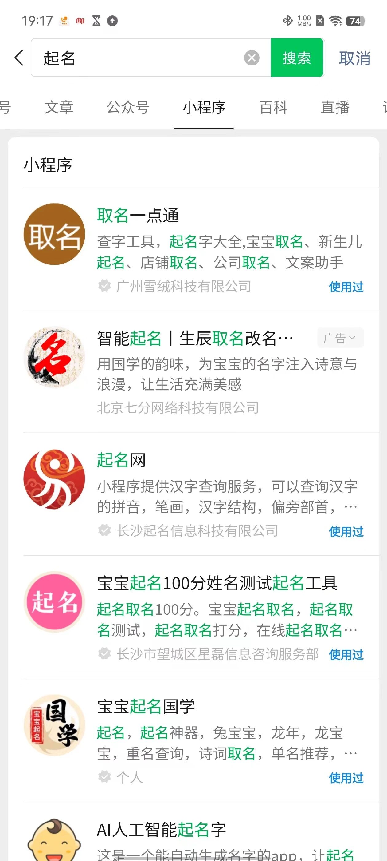 小程序被封禁,理由是“取名”属于平台未开放服务范围。 三好起名小程序在线上稳定运行很长时间了,突然以平台未开放为由封禁三好起名。 实际上,微信平台上有上百个起名小程序(见下图),他们都能正常服务,唯独封禁三好起名,这个是不是双标。三好起名小程序从23年11月正式服务以来,每次用户上一个台阶就会有幺蛾子发生,这里面是不是有猫腻?
