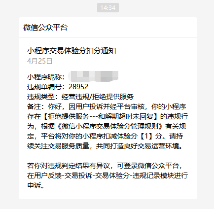 您好,请问小程序违规行为如何申诉?