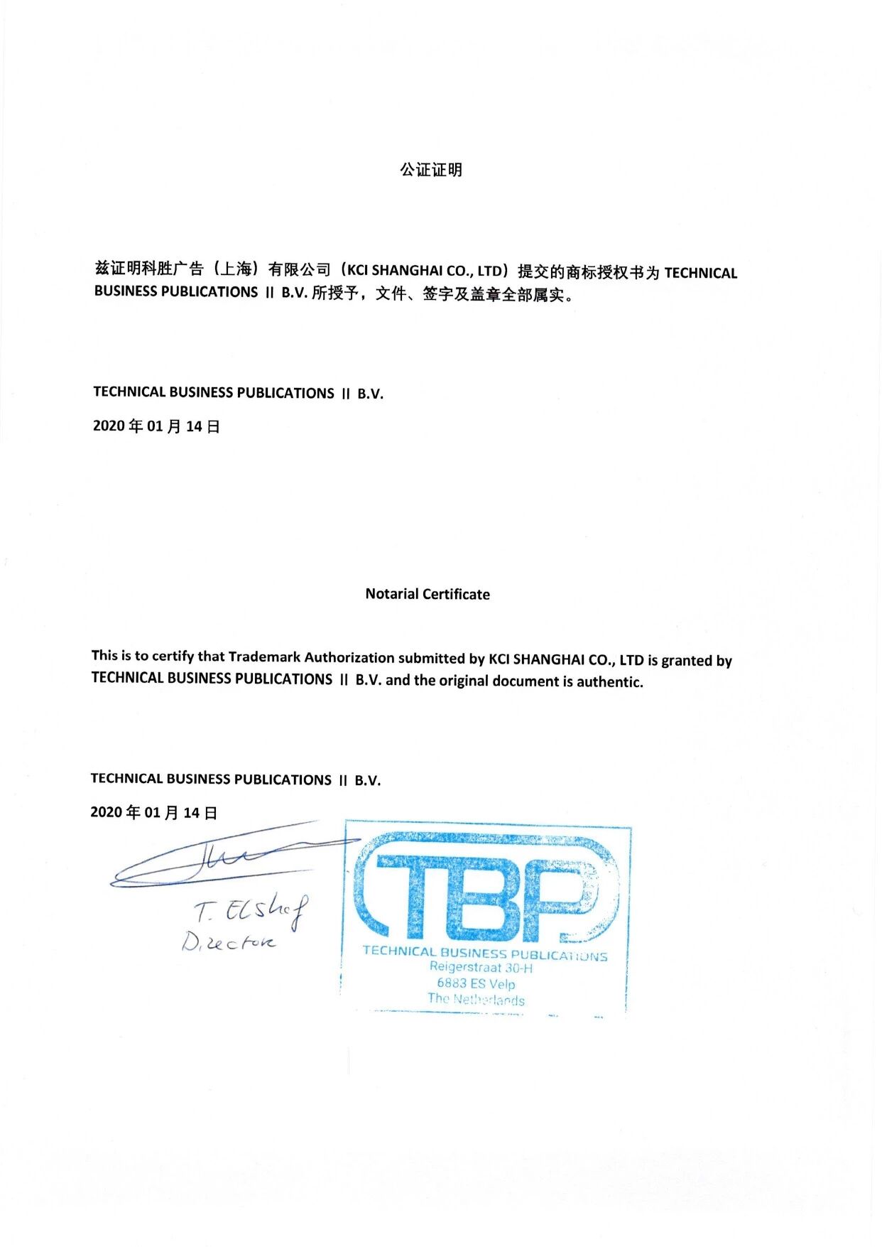 或(b)国内公证处对授权材料的《公证书》;
