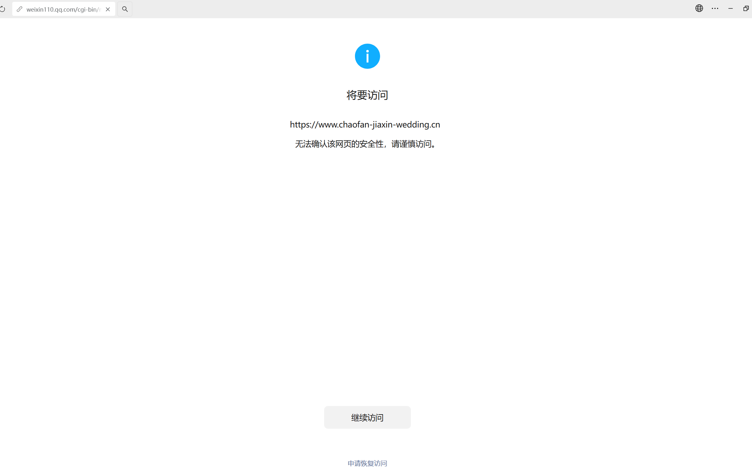 本人最近在腾讯云购买的域名部署了网站并通过了域名备案,网站中并无任何违规内容,为什么还是提示无法确认该网页的安全性,请谨慎访问。