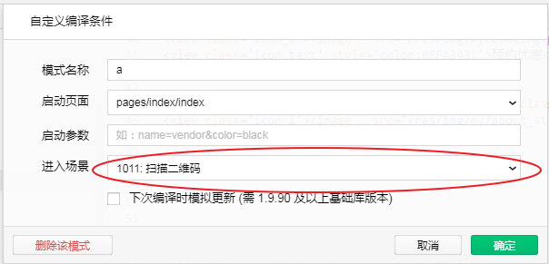 根据这个场景值出来了,手机调试也有,但是发布上去了就没出来,从聊天顶部进去的还是没有出来
