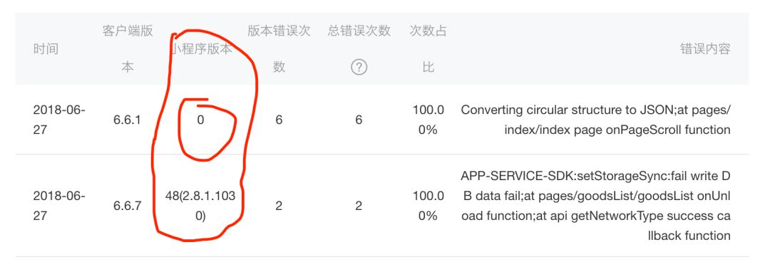 运维中心中查看错误日志,请问这个小程序版本为0,是表示什么意思?