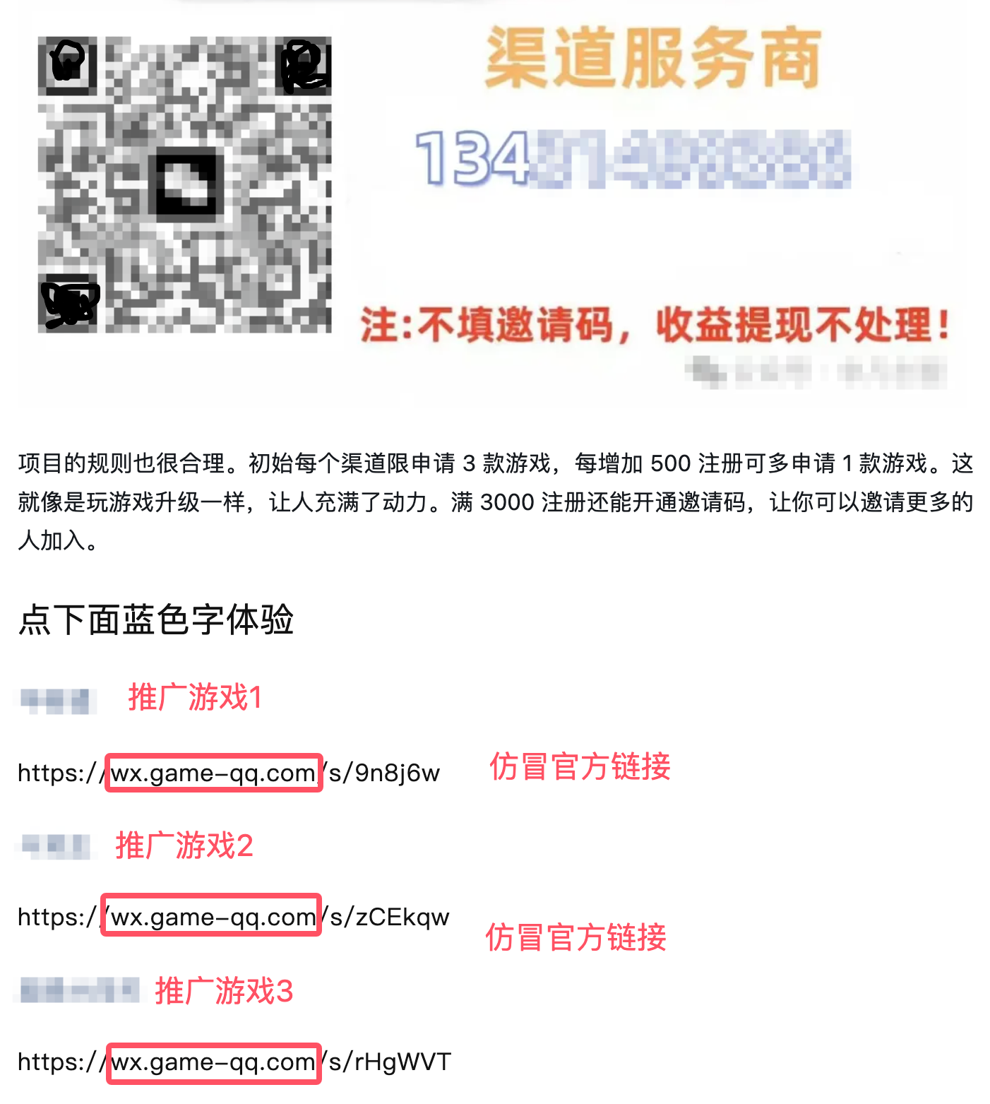 a. 案例描述:使用不实信息或损害其他小游戏的策略进行推广。
