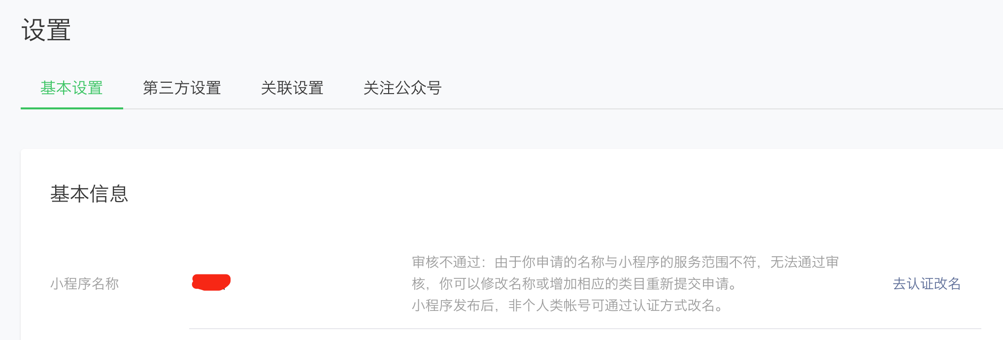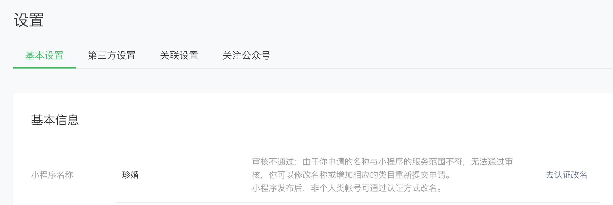 请问什么问题?核实该小程序已改名成功了。
