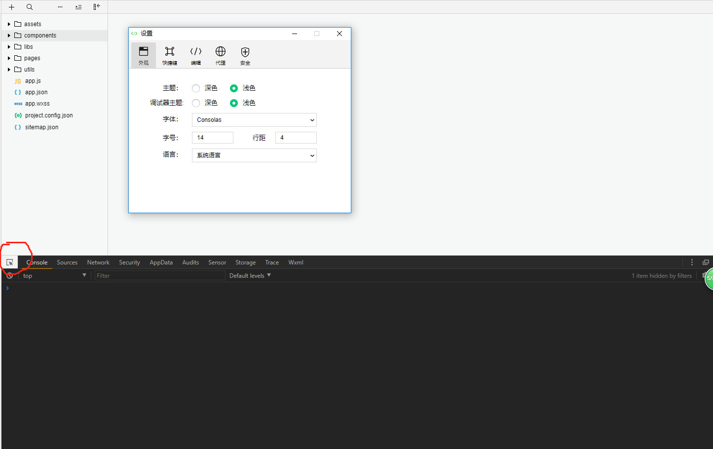 1、调试器主题本来是白色的,设置成深色后再设置回浅色只有红圈处变成浅色