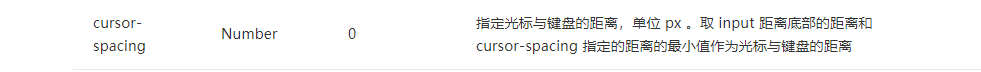 cursorspacing 在小米6 上测试时有问题的,其他手机没试过。在textarea中字的行数变化时,textarea 到键盘的距离是变化的