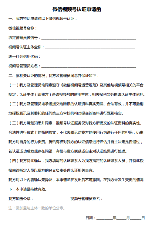 大家好,请教一下,视频号认证的申请函里面怎么填呢,