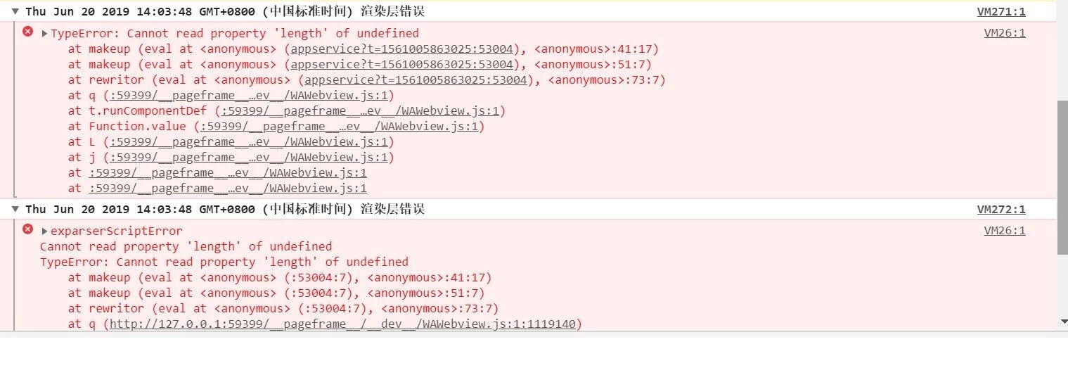今天升级到最新版本开发工具,进入一个页面的时候,报错,错误信息见下图,但是开发工具退会到:1.02.1905151,版本就没有问题。