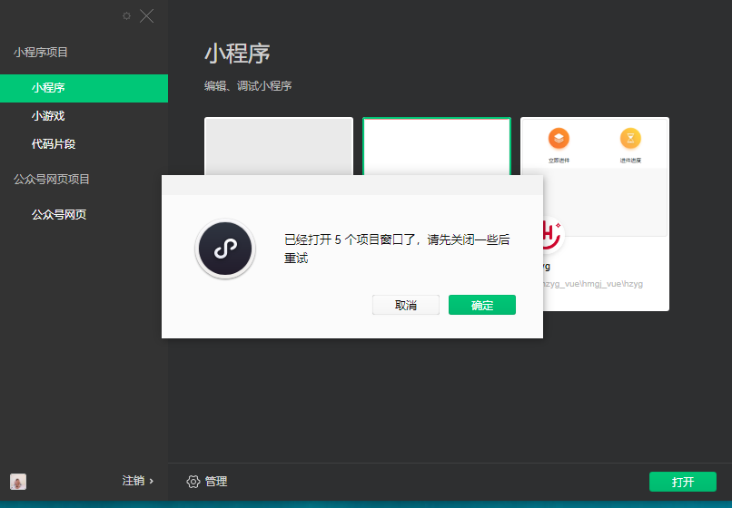 明明一个项目也没打开,选择了一个项目要打开,就弹出这个了,导致现在任何项目都打不开了