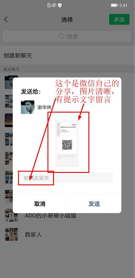 如上,分享图片的时候可否带上提示语?给朋友留言