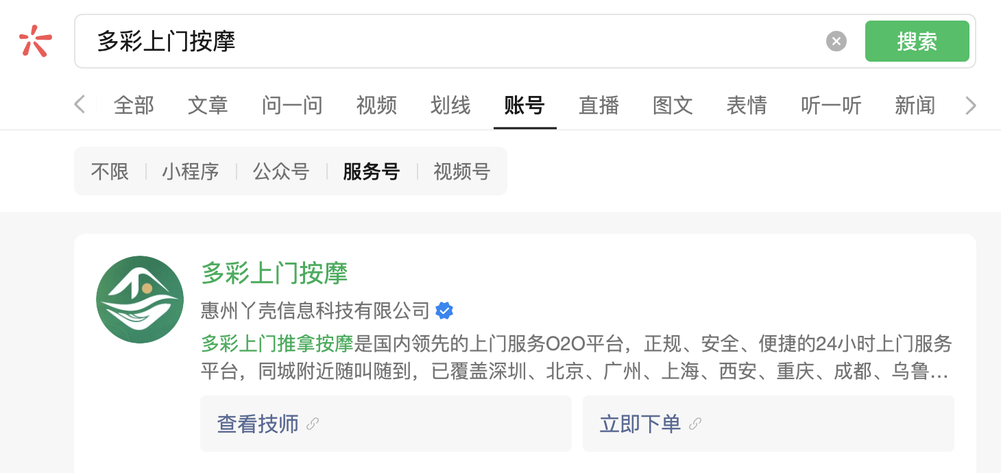 公众号名称:多彩上门按摩 Appid:wx82591a2026a95fbc