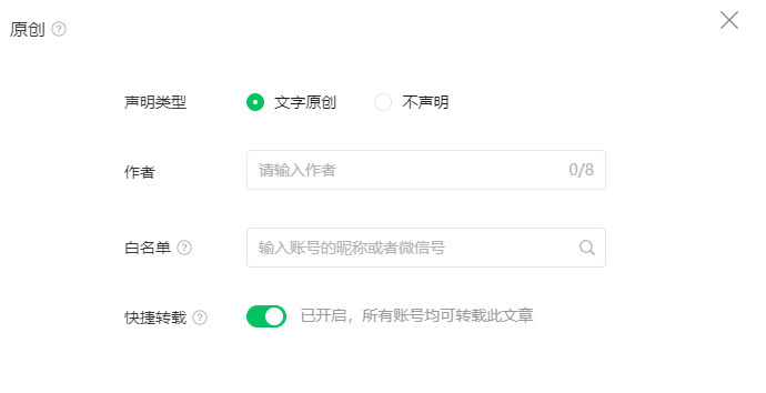 文章需要 注明原创,原创里面才有一个:快速转载的选项。
