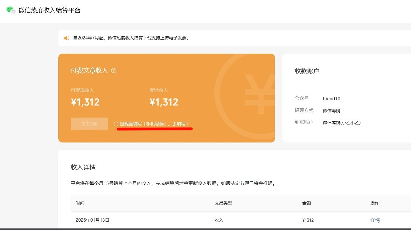 公众号被封禁,付费文章提现需要设置手机号,可是点进去链接失效无法设置,也无法提现,请提供设置入口或通道