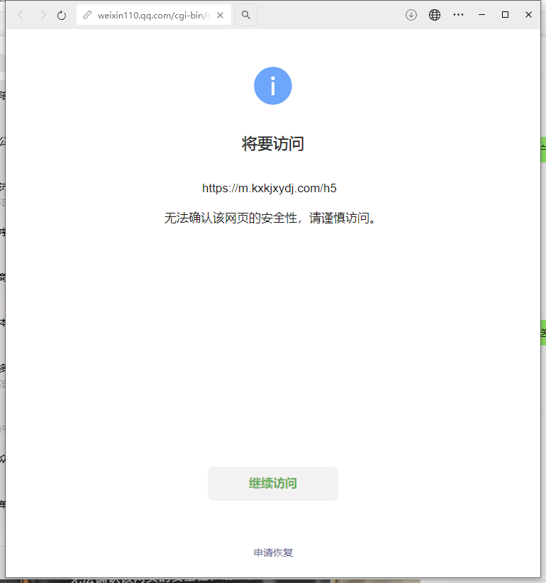 访问链接https://m.kxkjxydj.com/h5提示无法确认该网页安全性,之前处理过一次,但是现在又有部分人出现这个提示了,希望能深入的再处理下,恢复一下