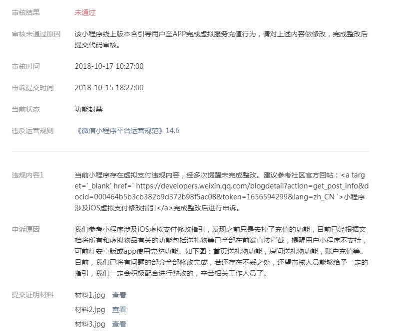 之前因为ios虚拟支付问题,ios功能被封禁,现已完成整改,还望能够解封,如果还存在其他问题,麻烦给一个明确的指引,自认为已经按要求完成整改,不知道为什么还是不通过?
