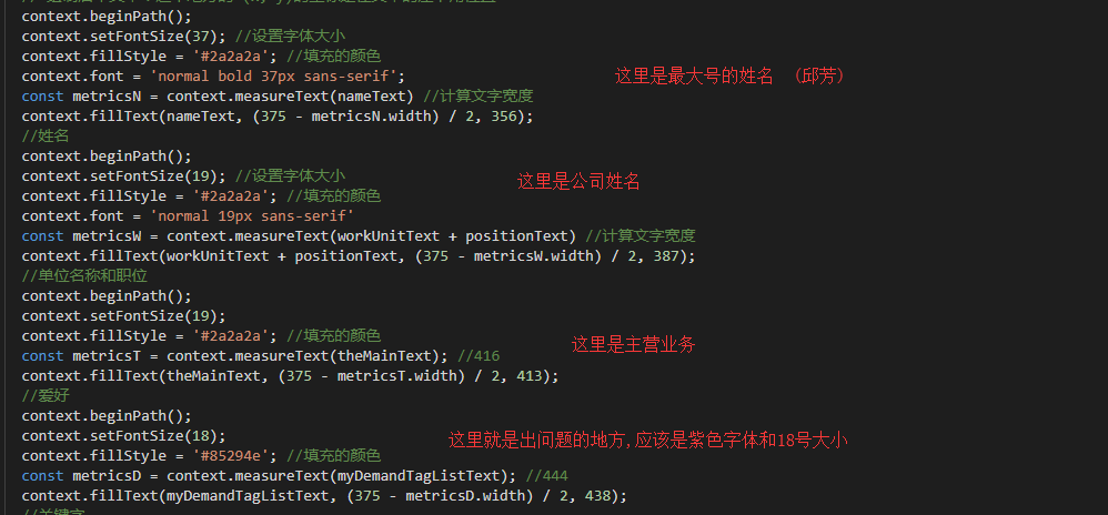 很明显,应该是紫色颜色和小号字体的地方忽然变大了,颜色也变大了,跟上面姓名的字体一样了,我不知道是哪里出了问题,代码贴上来给大家看看我写的是不是不规范