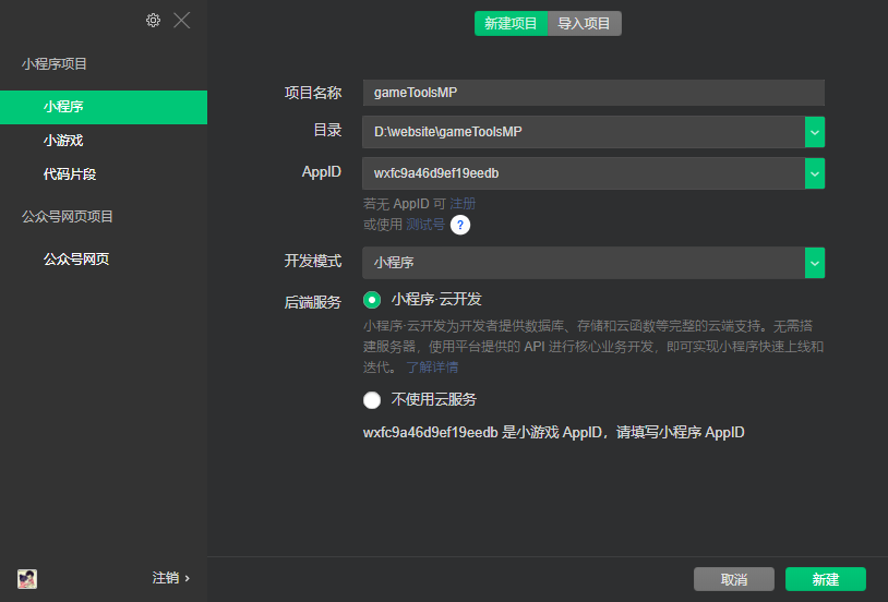 我选择信官方,你这个appid就是小游戏的