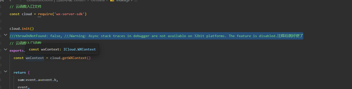 我是在云函数文件下发现多了一行throwOnNotFound: false,