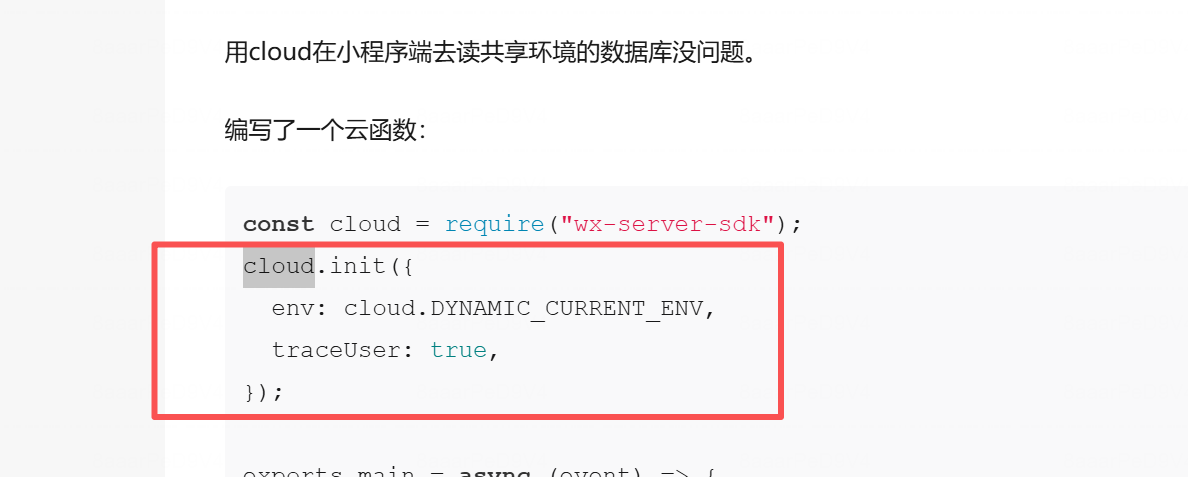 两个小程序A和B,A开通了云开发,B没开通,A把环境共享给了B。以下代码都是B环境的。