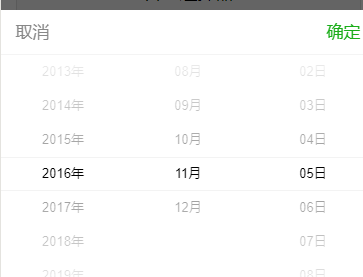<picker mode="date" value="2016-09-01" start="2015-09-01" end="2017-09-01" >