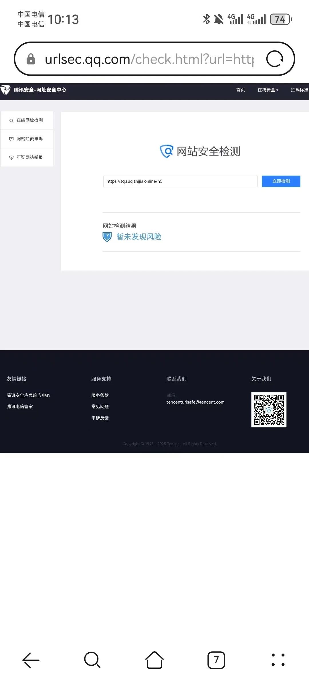 你好,经核实域名【suqizhijia.online】下的链接【https://sq.suqizhijia.online/h5】【https://sq.suqizhijia.online/h5/#/pages/technician 】违反了《微信外部链接内容管理规范》,我们无法恢复微信内直接访问的服务,请知悉。