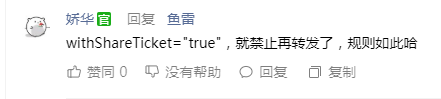 当安卓app设置了withShareTicke:true 后分享转发,安卓手机与IOS 长按该小程序卡片都不会出现 "转发 "按钮才对。