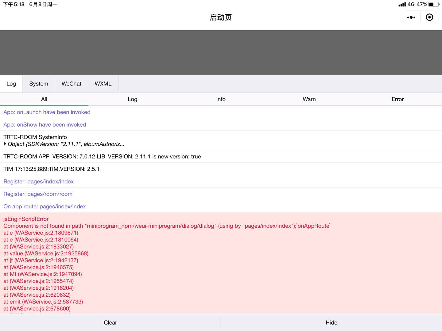 最新的版本 1.03.2004172 小程序启动报错 查看详情