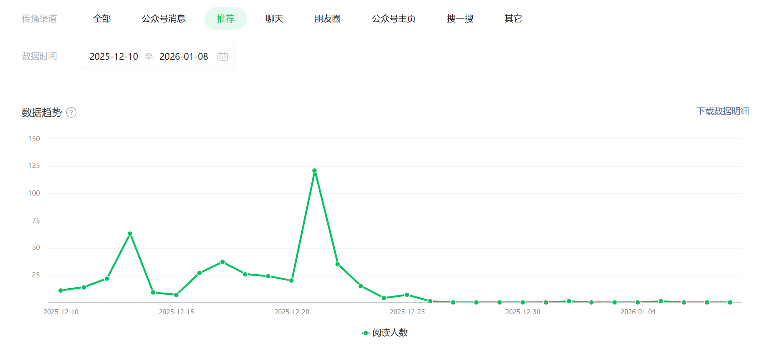 从去年12月底突然开始没有了推荐数据,且整个12月的推荐流量也很低,不知道是什么原因,希望能有个解释