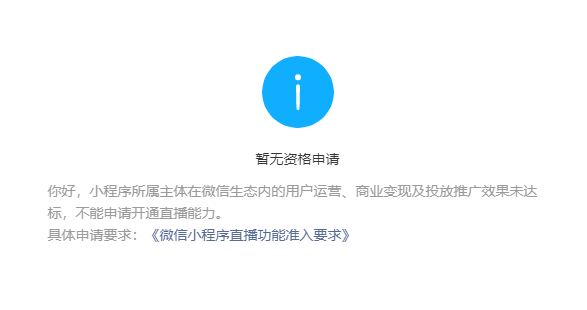 你好,核实到小程序暂不符合微信小程序直播功能准入要求,还需满足下列条件之一: