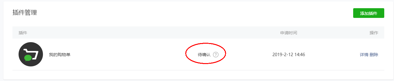 2月12号申请了 ‘我的购物单’ 插件,15号了 还是待确认