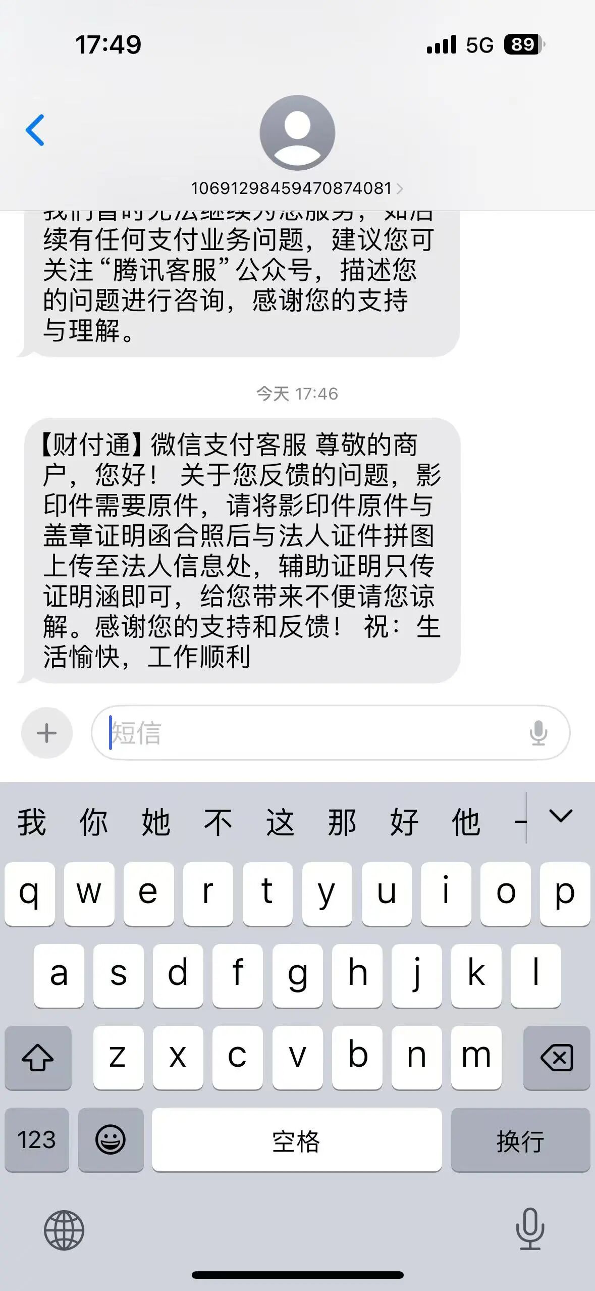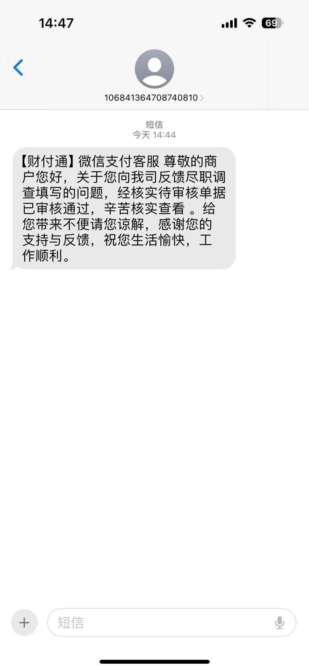 第三次审核专员给我们的回复是,如下图,我特意让他编成短信发给我