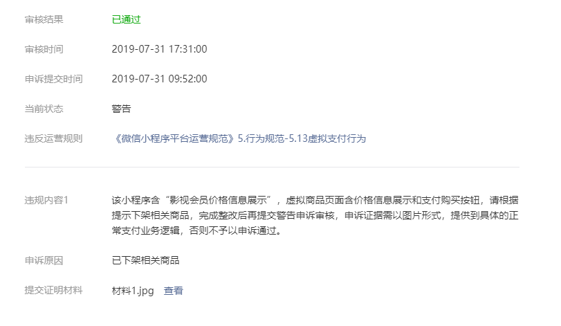 之前小程序由于涉及到影视商品,下架后重新发布,申诉已经通过,但是还是无法搜索小程序,麻烦处理下