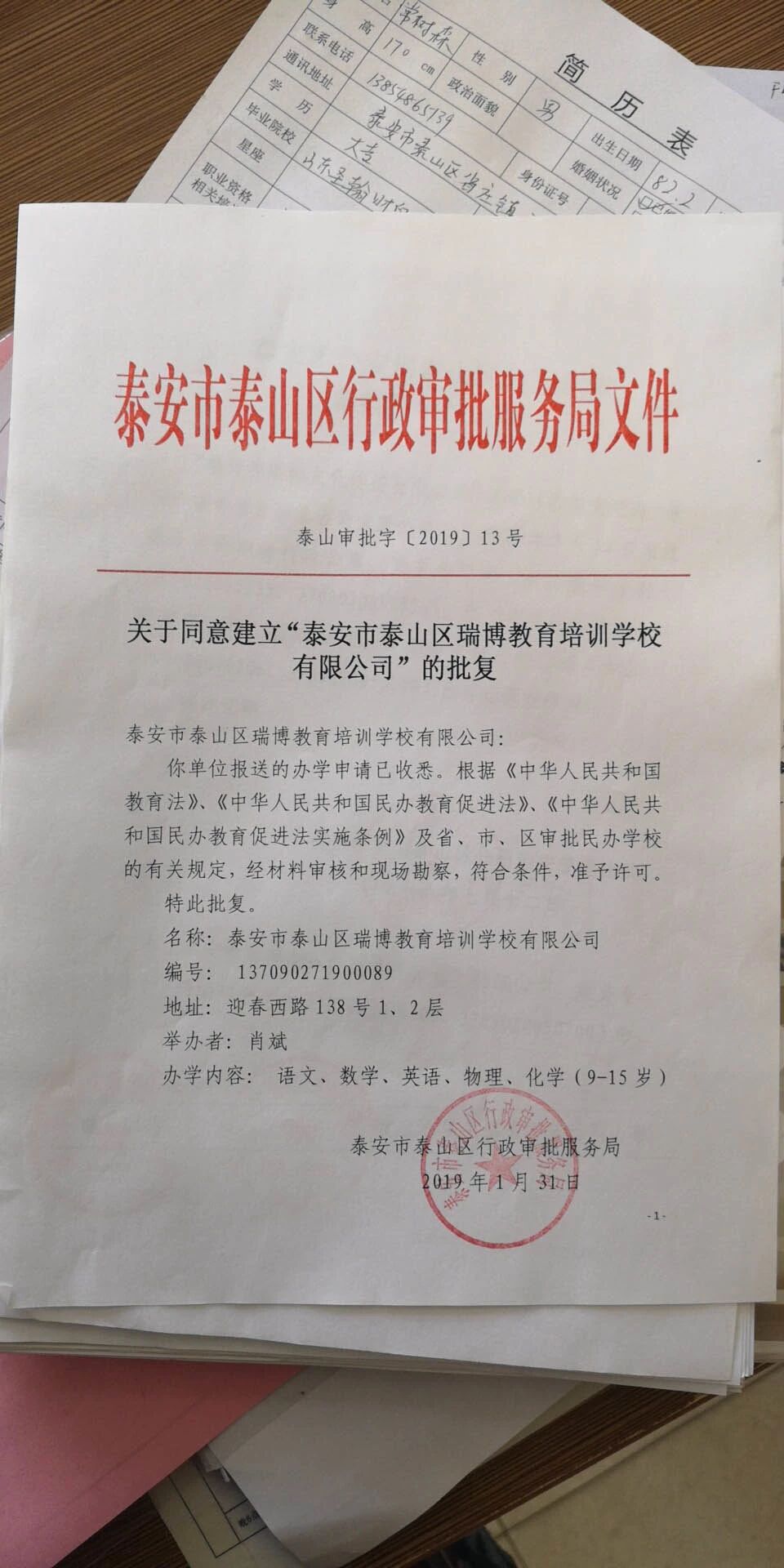 山东省泰安市分为泰山区和岱岳区,岱岳区的教育行业的下发办学许可证,可是泰山区的只下发营业执照和泰安市泰山区行政批服务局文件这个红头文件