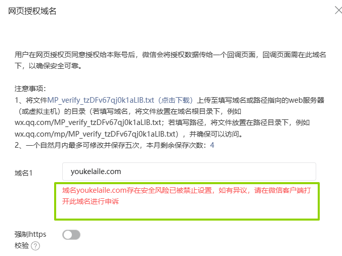 我的域名在腾讯安全网址中心是正常的,为什么绑定公众号这里提示有风险?