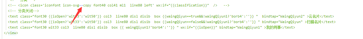 <text class="font30 {{isOpen?'wit33':'wit50'}} col3 line80 disl disib box {{waingQiyun==false&&!waingQiyun1?'borb4':''}} " bindtap="WaingQiyun" >扫描名片</text>