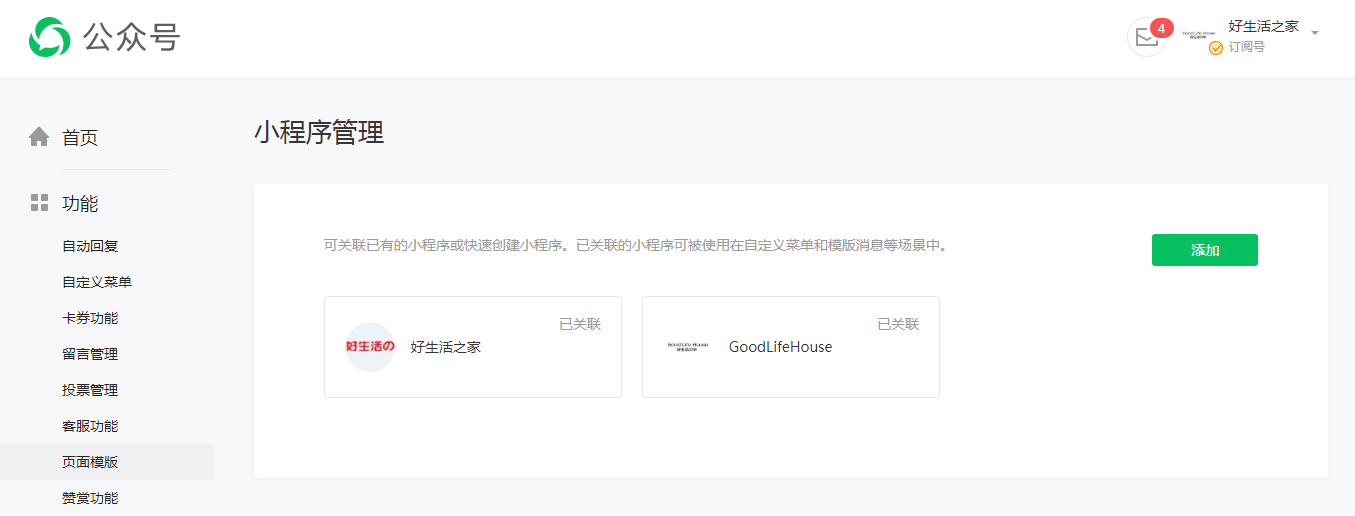 如图,这两个小程序没有取消关联的按钮,有一个是门店小程序的。