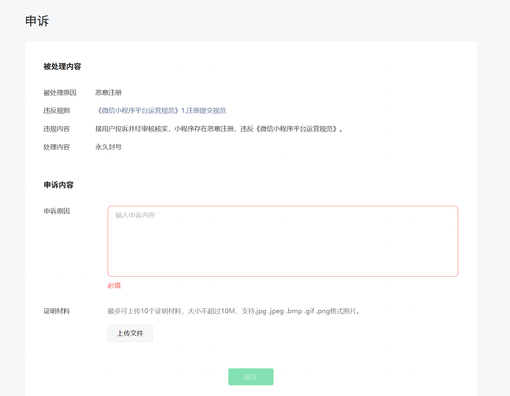 我们小程序已经长线运营多年,目前已经累计很多用户数,目前突然被处罚造成了大量的客诉和客服压力,同时公司无法正常经营业务,导致业务暂停。
