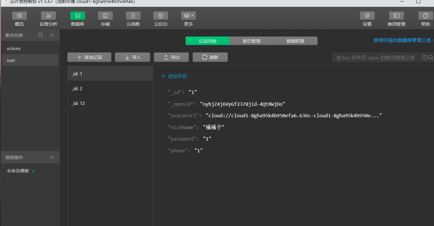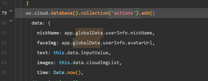 我现在创建了两个集合,如图1,我想让’actions‘集合中的faceImg等于’user‘集合中的avatarUrl应该怎么改?