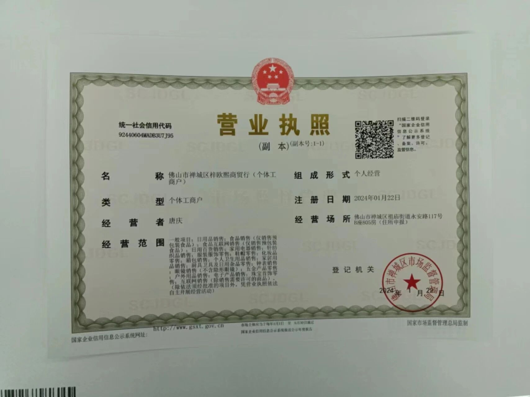 企业名称:佛山市禅城区梓欧熙商贸行(个体工商户)