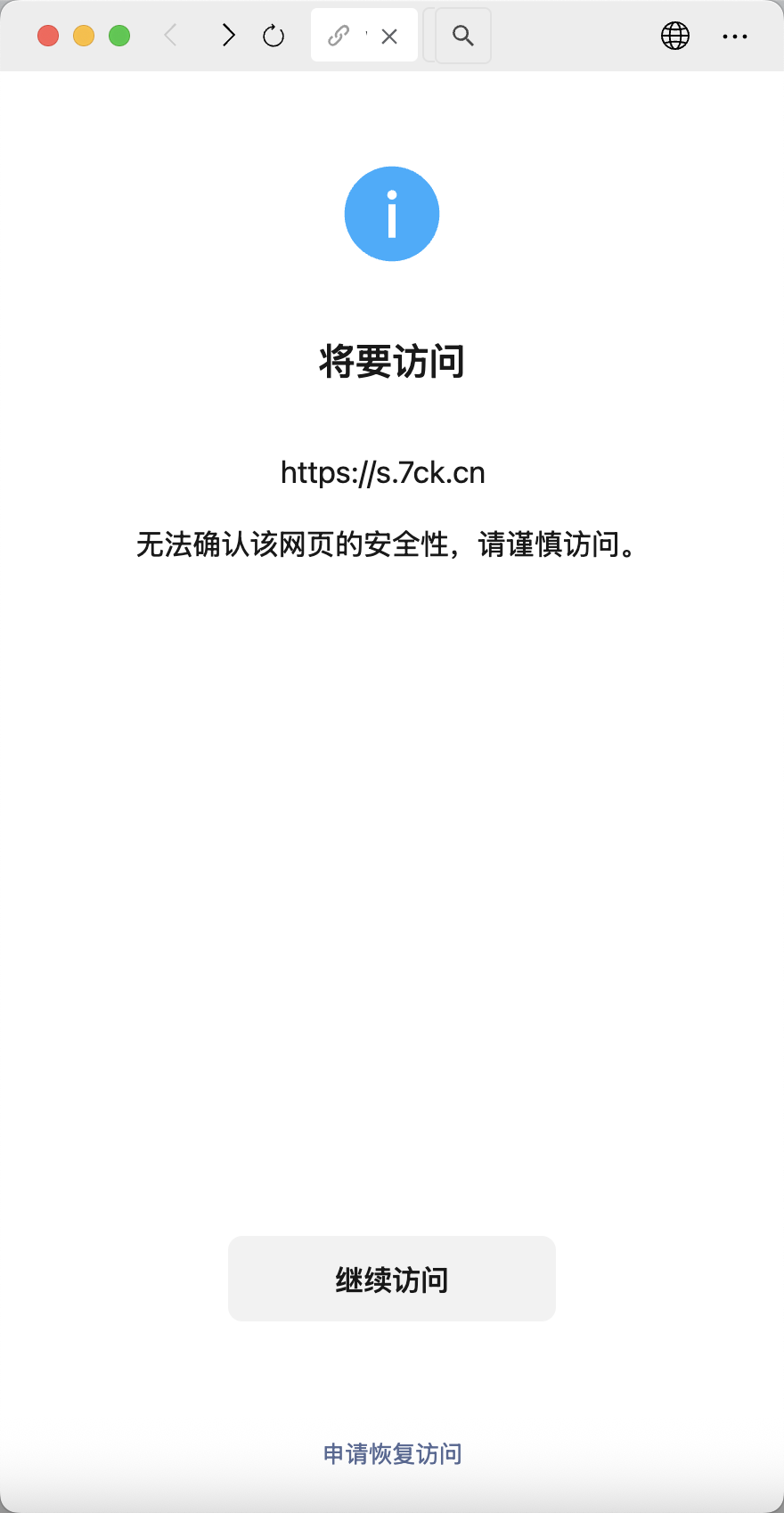 https://s.7ck.cn/ 就是普通的信息汇总的网站,但是在微信中被拦截了,可以帮忙看一下是什么原因吗 谢谢