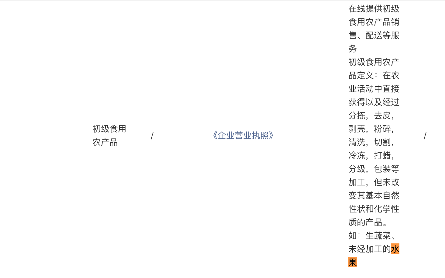 你好,根据以上信息反馈,商家自营-初级食用农产品类目可以支持小程序中初级食用农产品的在线交易及配送,审核将以实际提交的小程序服务内容为准。