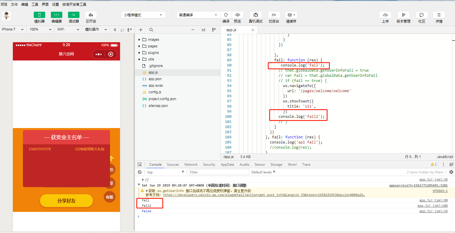 您好 我发现是我的小程序 首次进入 授权失败 但是不跳转到授权页 (打印以及showToast都会执行 )