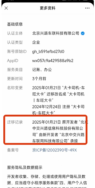 1.现在的情况是 ,“北京中交兴路车联网科技有限公司”的主体名称变了,变成“北京兴路车联科技有限公司”,仅公司名称发生了变化,我也无法通过备案【变更】来实现是吗?