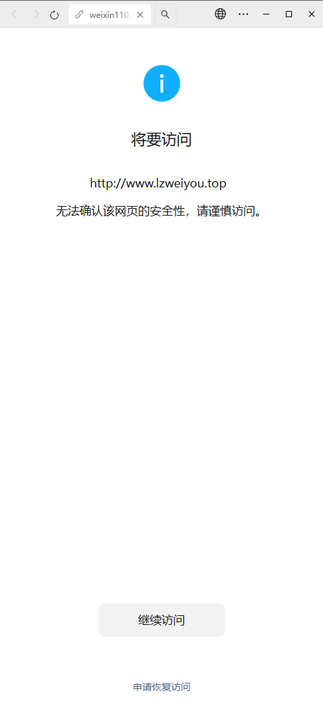 我的网站https://www.lzweiyou.top仅用于企业官网使用,没有任何违规违法问题,请管理员恢复一下正常访问,解除域名拦截。