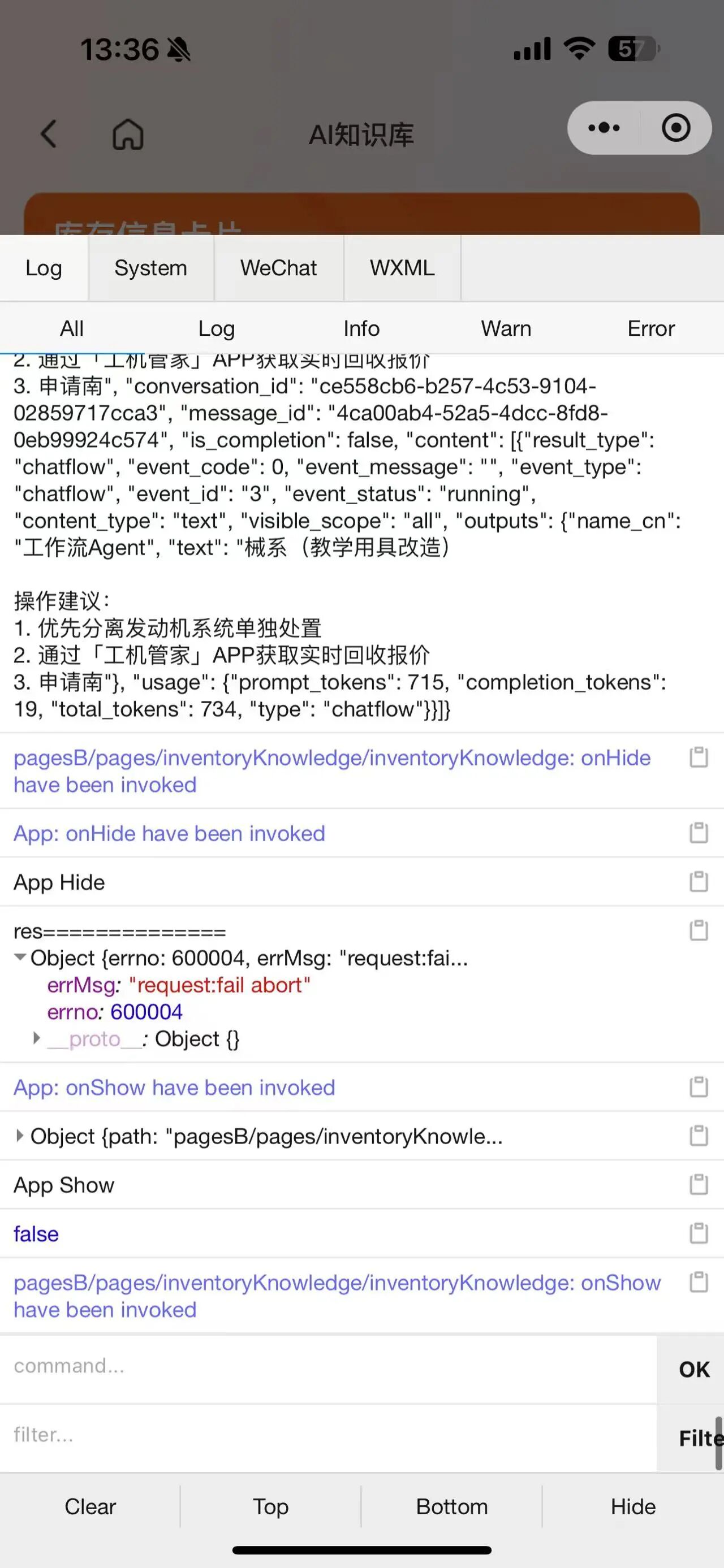 AI大模型,流式响应中途中断,小程序返回errMsg:"request:fail abort" errno: 600004