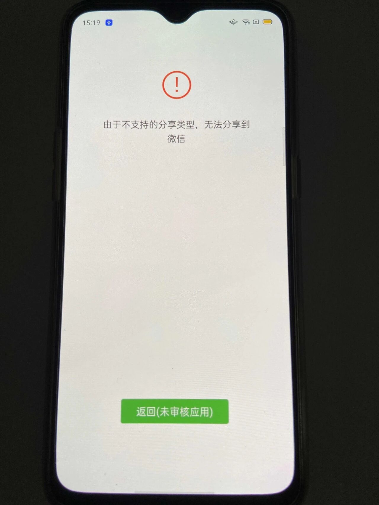 使用的微信版本为8.0.2,分享的SDK版本是 com.tencent.mm.opensdk:wechat-sdk-android-without-mta:6.6.21,App已经审核通过。具体现象是:首次分享成功,再次分享出现上述界面,杀掉应用进程又可以分享