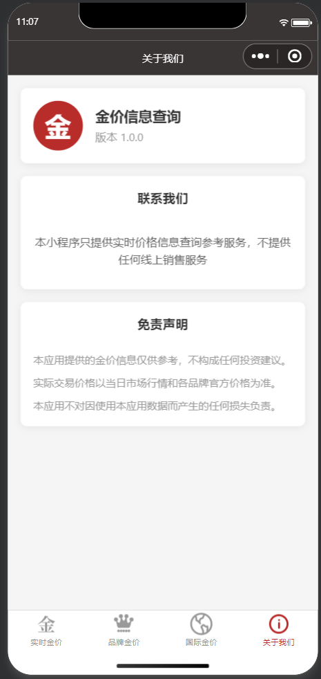 2.小程序并不涉及任何线上线下贵金属的销售和回收,出现的“买入”和“卖出”只是为了让普通人更容易理解的一个代名词,不是一种交易行为。小程序也明确的提示了,只提供价格信息展示服务,详情请看截图