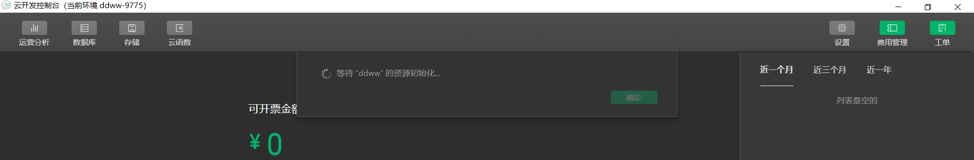 在使用云开发平台,一直资源初始化,点击其他按钮也没反应,这是怎么回事?