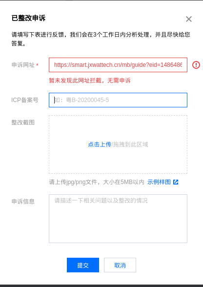 以下是腾讯云品牌经营管理的申诉,显示没有问题